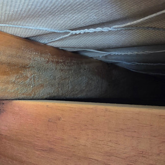 Upon entering the roof cavity, we found visible mold growth on multiple timber purlinsâthe structural timbers that the roofing material is fixed to. This was not just a cosmetic issueâit was a red flag indicating potential moisture ingress or poor drying of materials during the construction process.